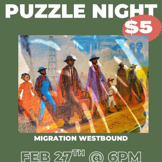 Join us on Fri, February 27, 2026 at 6:00 PM for a fun-filled evening of puzzle-solving with your neighbors and friends. This month's puzzle honors Black History Month with "Migration Westbound" by Joseph Watson. This event is a great way to relax, socialize, and challenge your brain. No experience necessary - all skill levels are […]