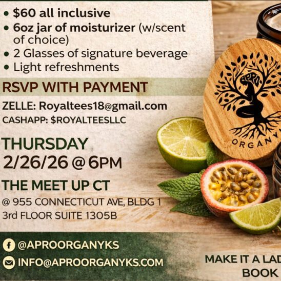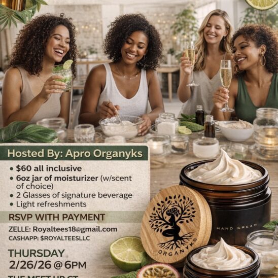 Apro Organyks 955 Connecticut Avenue, Suite 1305B, Bridgeport, CT, United StatesJoin us for a fun, hands-on lotion-making experience you don’t want to miss. 📅 Thursday, 2/26/26 @ 6PM 📍 The Meet Up CT – Bridgeport ⚠️ RSVP WITH PAYMENT REQUIRED by Monday 2/23/26 Spots are limited — secure yours ASAP! DM or check the flyer for payment details 💫 #WhipAndSip #LotionMakingClass #CTEvents #GirlsNightOut #SelfCareExperience